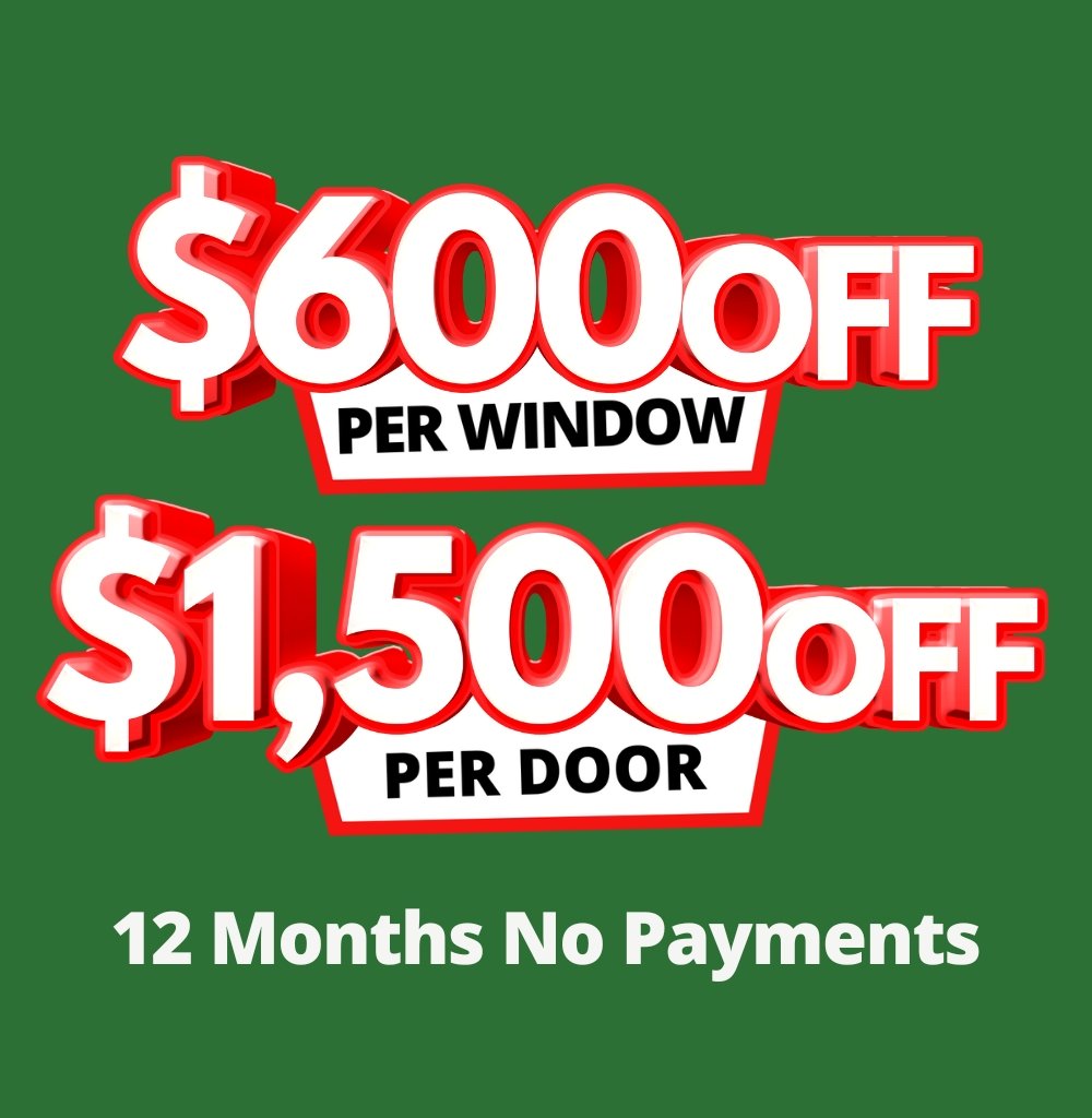 Save $600 Per Window & $1,500 Per Door $0 Down, $0 Payments, 0% Interest – No Payments for 12 Months $289/Month Whole Home Window Replacement Active Military & Veterans Senior Discount