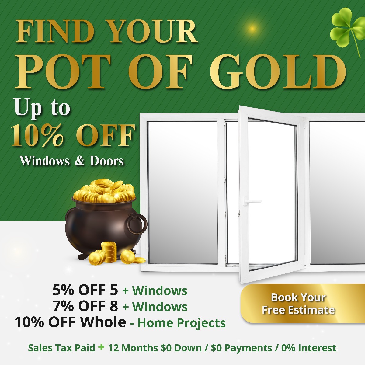 In addition to special offers and promotions, ask our sales representative about our quick, digital financing application process. From low-interest traditional loans to no down-no payment-no interest deferred financing plans, we can help you fund your replacement window project so you can mobilize your cash for other investments. We are a proud partner of GreenSky, one of the largest lenders for the home improvement industry. See how much you can be pre-approved for.